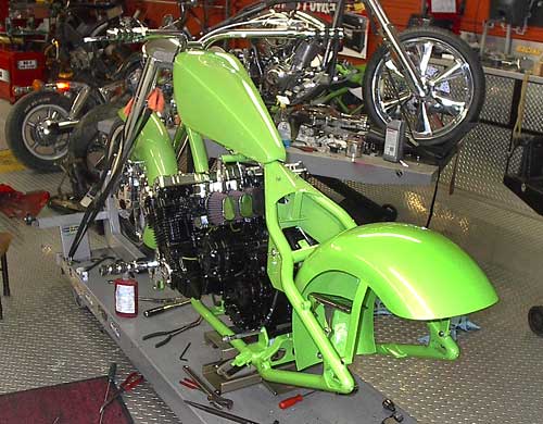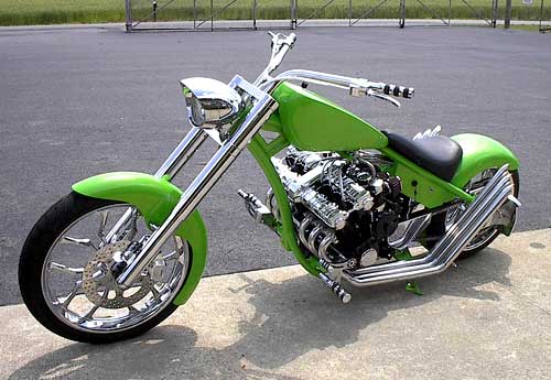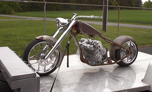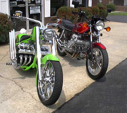 Steve also build custom bikes. One of his recent customs, X Project 3+3, has a rebuilt six cylinder